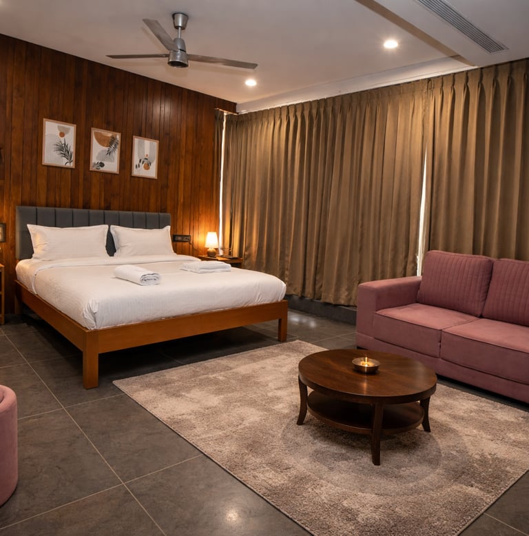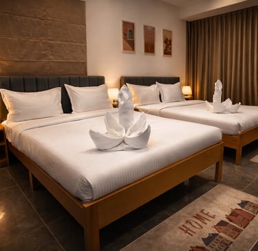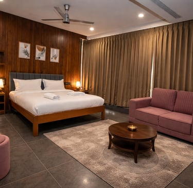 Experience elegance in our Deluxe Room - ideal for couples or solo travelers seeking extra comfort. This spacious room offers a luxurious king-size bed, a private bathroom with premium finishes, and a modern interior designed for both relaxation and style.