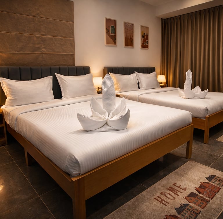 At Hotel Navas Inn Kolhapur, we offer two types of comfortable and well-designed rooms to suit the needs of every traveler. Whether you are looking for a budget hotel room in Kolhapur, a family stay near Mahalaxmi Temple Kolhapur, or a comfortable hotel in Kolhapur city center, our rooms are designed to provide relaxation, convenience, and modern amenities.